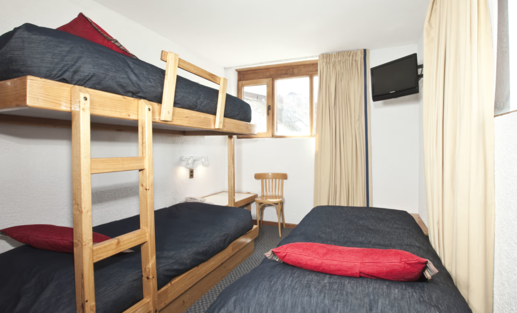 • Acomodação: Quartos compactos (18 m²), com capacidade para até 4 pessoas , ideais para quem passa o dia nas pistas. Alguns utilizam beliches para acomodação de grupos.
