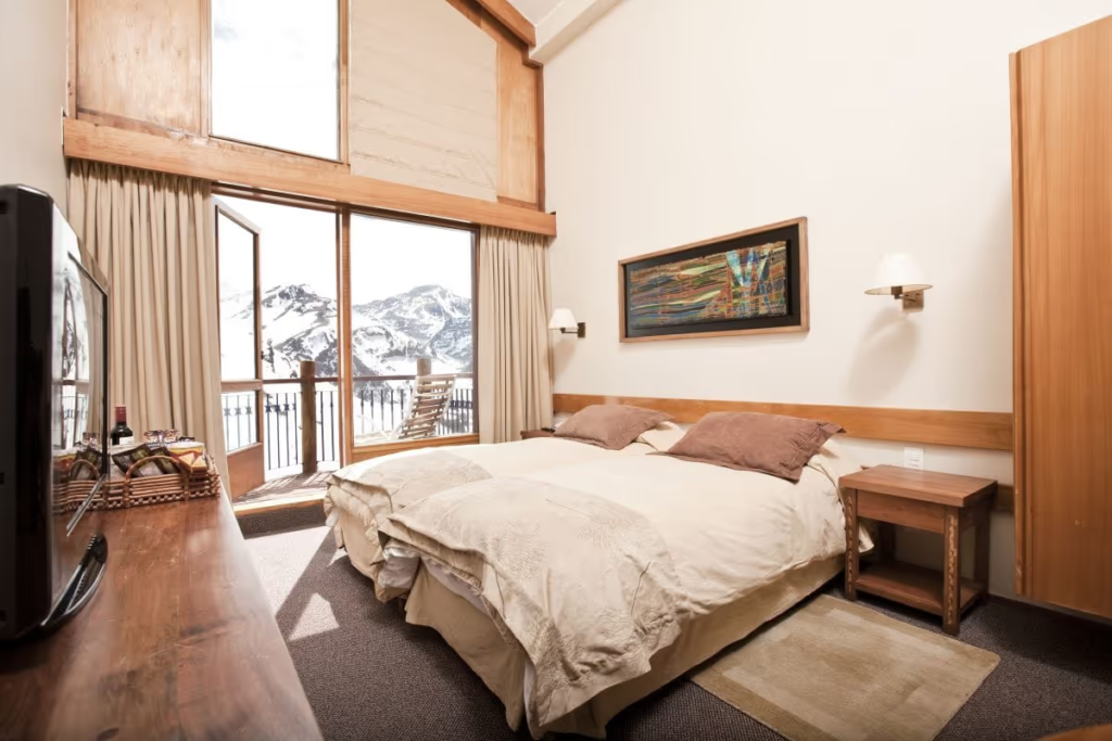Luxo, privacidade e a melhor experiência de resort 5 estrelas.Hotel Valle NevadoO Mais Exclusivo: Atendimento diferenciado, suítes com varanda e acesso imediato ao Spa/Heliski.Suítes espaçosas de 42m², Cama Queen, Acesso VIP direto para as pistas.$$$ (Mais Alto)