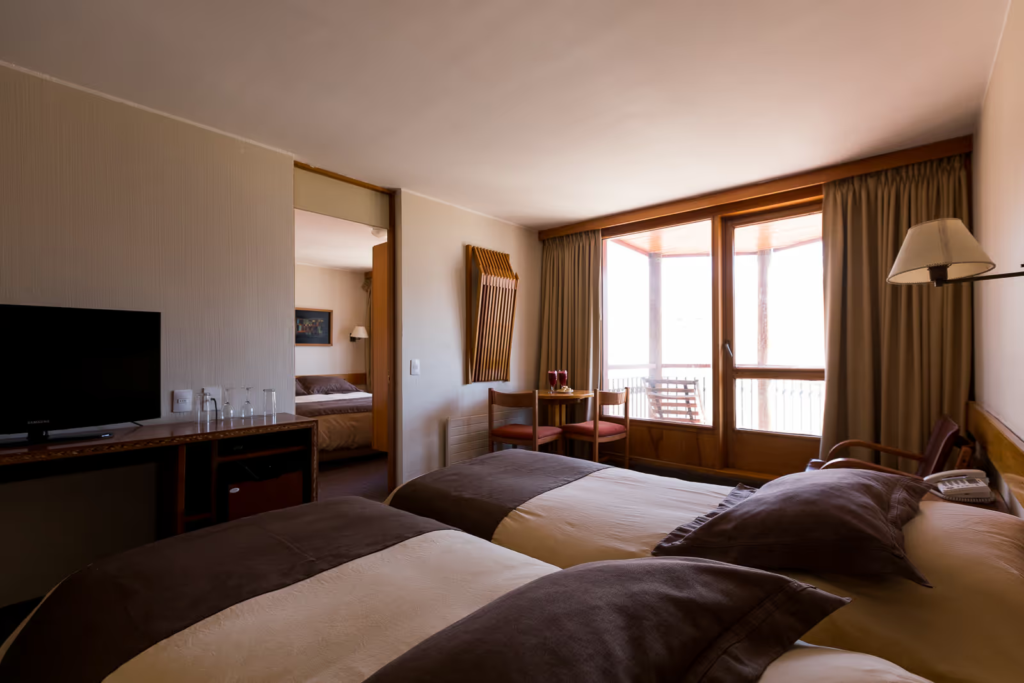 Foco total no esqui, busca o melhor custo-benefício Ski In/Out e está em grupo ou com orçamento controlado.Hotel Tres PuntasO Mais Prático: Excelente preço, mantendo a conveniência total (Meia-Pensão e Ticket inclusos) para maximizar o tempo de esqui.Quartos compactos (18m²), Otimizado para esquiadores, uso de beliches.$ (Mais Acessível)